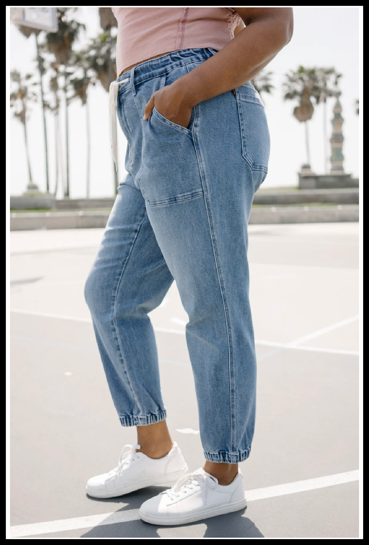 The "Elena Joggers" bring together the cozy feel of loungewear with the polished look of denim. They feature a high waist, are super soft, and are effortlessly cool. They have a flattering shape, the perfect laid-back length, and a soft stretch that feels as good as they look! The jogger-style cuffs provide that relaxed yet put-together vibe. These are easy dress up or down, depending on your mood. Say hello to your new everyday favorites! Model is 5'10" and is wearing a 14W (XL).